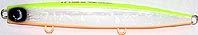 | 遠距離攻略可能なぶっ飛び設計。 浮き上がり抑えた構造、強風時・波高の時化日の使用も完全想定。 高強度肉厚設計&レーザーカット貫通ワイヤー採用、大型青物ファイト完全想定。 低〜中速リトリーブでシンキングミノーのようにハイピッチで泳ぐ。(デッドスローでは泳ぎません。) ヘッド上部のスライドアイに結束し、優しく下方向に連続アクションさせると水平スライドダートアクション発動。 |