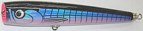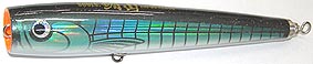 | プロップナルドの特徴であるそのペラは、単なるアピールのためではない。 このペラが出す音や波動や泡は、遊泳能力のあるシイラ、フクラゲ(ワカシ)がベイトを捕食するとき のシーンを演出。 またその魚たちがマグロから逃げるとき、瞬発的に泳ぐときにでる音や波動、トビウオが飛び出すとき の音や、ナブラで水面を逃げ惑うベイトの音をも演出する。 そして泡を大量に発生させることが、ナブラにおいて絶対的な状況をリアルに生むだけでなく、ルアー 自体を見切られないためのスクリーンの役割ともなる。 ペラの効果により水絡みは良くなり、音、泡、波動とアピール力は倍増する。 もちろん、マグロだけでなくヒラマサやブリ、シイラなどの大型捕食魚にも有効である。 このルアーを使用するとき、使い方によっては糸ヨレができる可能性があるので、スイベルの使用を お勧めします。 〈使用方法〉 通常の水絡み系のルアーのおよそ半分のロッドアクションで十分なルアーアクションを引き出せる。 コツは長く引きすぎずある程度のスピードでダイブ&ダートさせ、2〜4秒のポーズを取らせる。 そしてまた、アクションさせポーズ、これの繰り返しである。そして重要なのはポーズ。 前出した通り、このタイミングでのヒット率が高いため、しっかりとしたポーズの時間を与えることは 重要である。 |