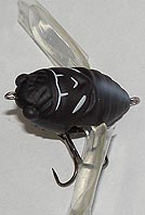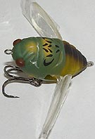 | TTシケイダーがよりリアルに一回り大きくなりました。 このルアーが出す波紋やノイズは水面を意識した魚に強烈にアピールし落下したセミを忠実に再現します。 ウイングは透明なソフトプラスチックで出来ている為、衝撃に強く、魚に違和感を与えません。 ウイングの付け根をボディ内部に収めた為キャスト時の空気抵抗が減り、更に稼動ウエイトの為、飛距離が大幅に 伸びます。これはラージマウスバスにもかなり効きそう!・・・・すでに釣れてるゾ! |