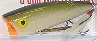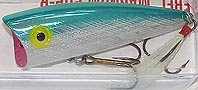 | 後部が少し下がり、アゴの下からエラの辺り(背部)までが水面より出て浮くタイプ。 (昔からあるポッパーの名品である!) ラトルが重心移動状態になり思いの他 距離が出る! 練習が必要だが、位置を移動せずに左右にバチャッバチャッ!とアクションさせることもできる! ペンシルではレッドペッパーだが、ポッパーではこのチャグバグをウマク動かすことができれば、 全てのパッパーが動かせるようになる! (現在でもタックルボックスには必ず入れてある!私が一番バスをキャッチしたポッパーです!) (ポッパーを使う時は、まずこれで釣ってからその日の調子を考えることが多かった。プレデター垣内) |