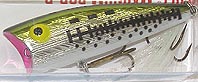| 熱い要望を受けて復活したハトリーズステッキー0 19993〜2000年まで販売されていたステッキーシリーズ。 その中でもハトリーズステッキー0は、左右へのロングスライドや ショートスライドの調節が可能うえ、ジャークによって水中へダイブ させると、体をくねりながら右左へ泳いで浮上するなど、使い手の 技術によってさまざまなアクションを演出できるミノーペンシルタイプ として、多くの実績を上げました。 ワンポイントアドバイス! ハトリーズステッキー0は、ラインスラックを多めに柔らかく アクションさせるとスライドが出やすくなります。 ダイレクトに強めに力を咥えてやればダイブしてイレギュラーな アクションをしてくれます。 (トップに出難い日はこれが効くのです。) 餌と呼ばれたサーフェイスプラグ ハトリーズステッキー0 |