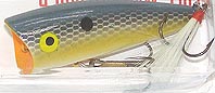 | 後部が少し下がり、アゴの下からエラの辺り(背部)までが水面より出て浮くタイプ。 (昔からあるポッパーの名品である!) ラトルが重心移動状態になり思いの他 距離が出る! 練習が必要だが、位置を移動せずに左右にバチャッバチャッ!とアクションさせることもできる! ペンシルではレッドペッパーだが、ポッパーではこのチャグバグをウマク動かすことができれば、 全てのパッパーが動かせるようになる! (現在でもタックルボックスには必ず入れてある!私が一番バスをキャッチしたポッパーです!) (ポッパーを使う時は、まずこれで釣ってからその日の調子を考えることが多かった。プレデター垣内) |